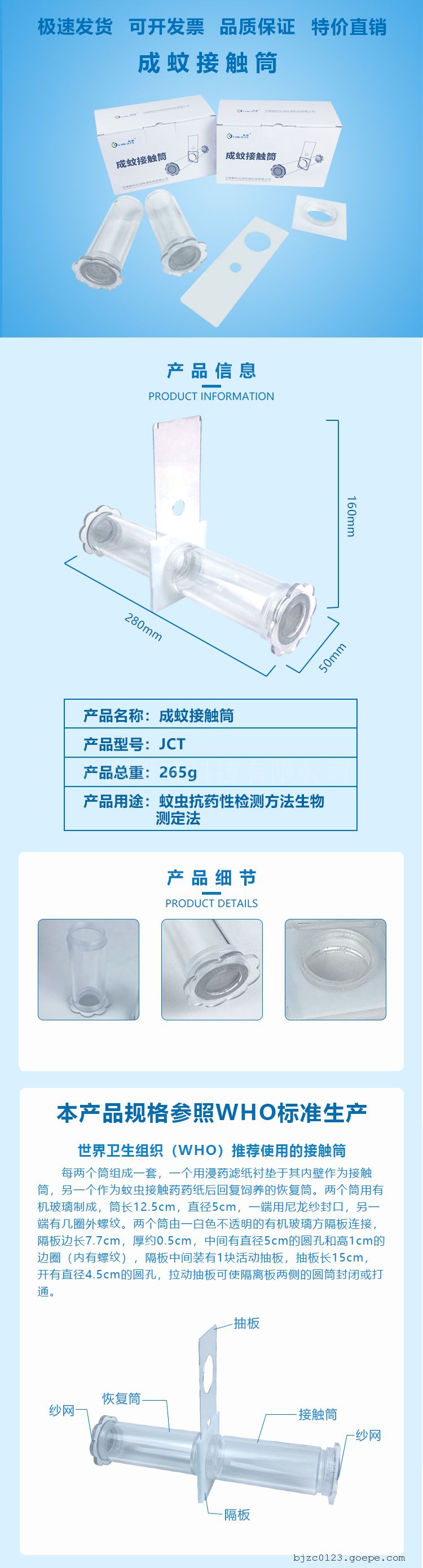 用途:本款产品主要用于蚊蝇类医学媒介生物的抗药性检测。